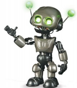 Hey pals. Today I am gonna blog about this robot. Isn’t he cute. He is amazing.  Ok so this robot can move his arms around and go from looking happy (above) and to evil blow. It’s all controlled by a tablet PC with a 30 foot range that receives  a real time video feed. As shown in the video after the break the  operator can even speak through the robot, which will pitch his or her voice. I think that it’s pretty cool and I wish I had one robot like this. Gotta go now. Until then see ya. 🙂